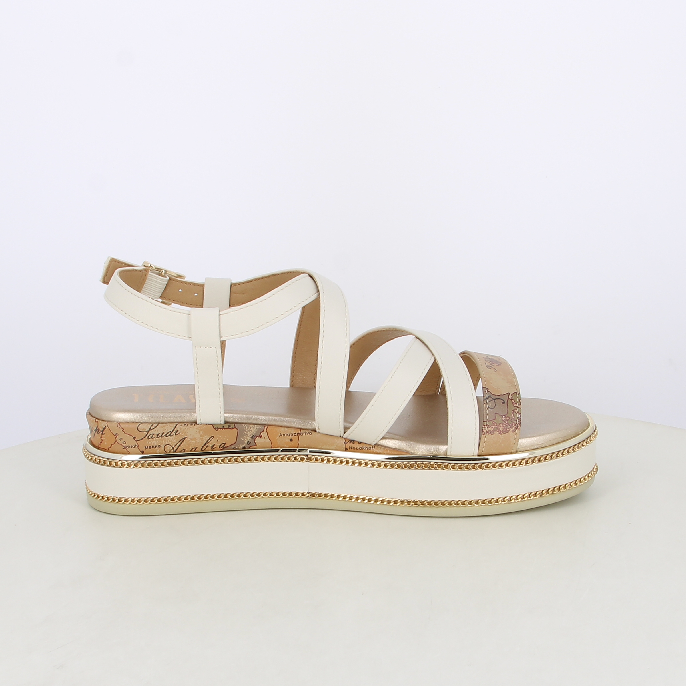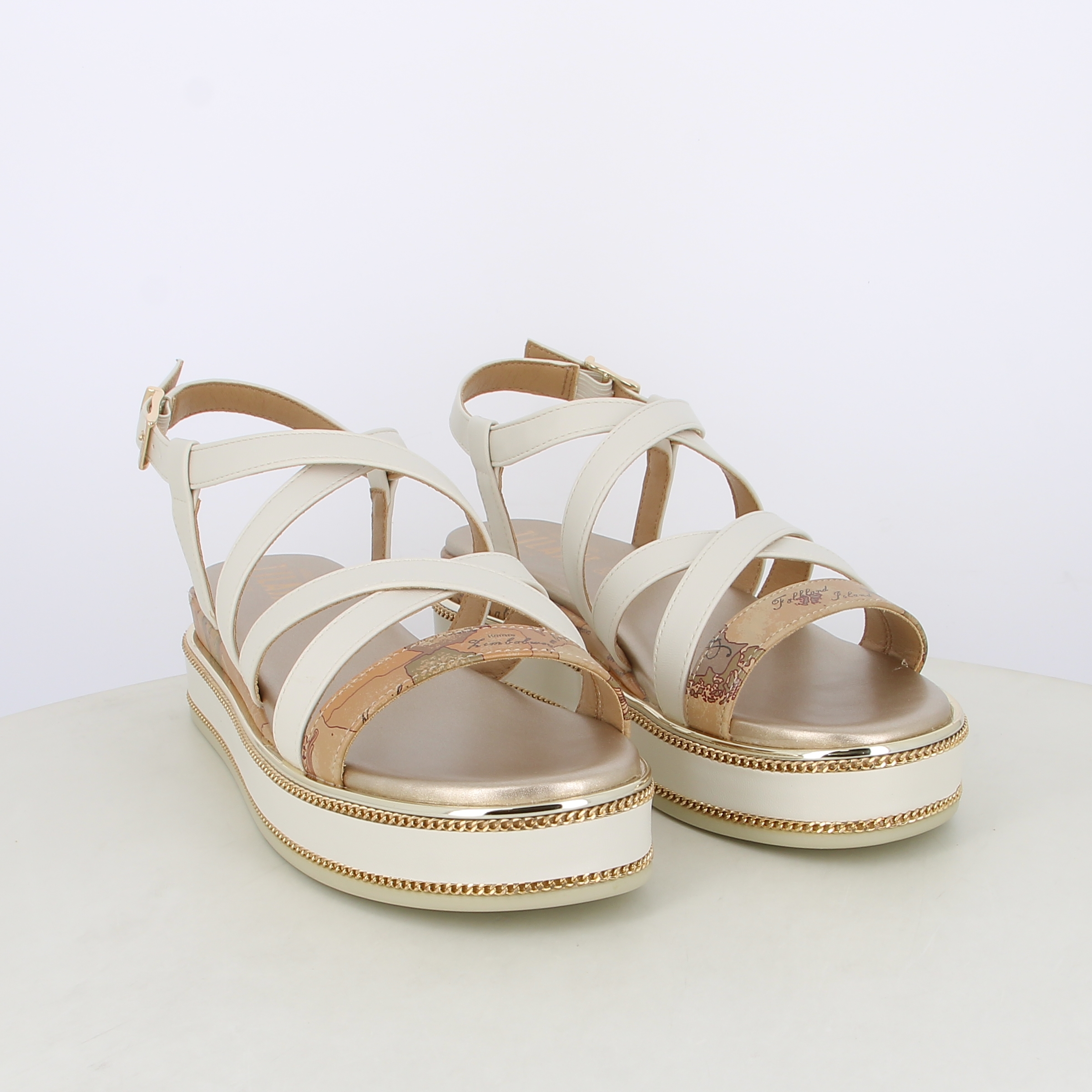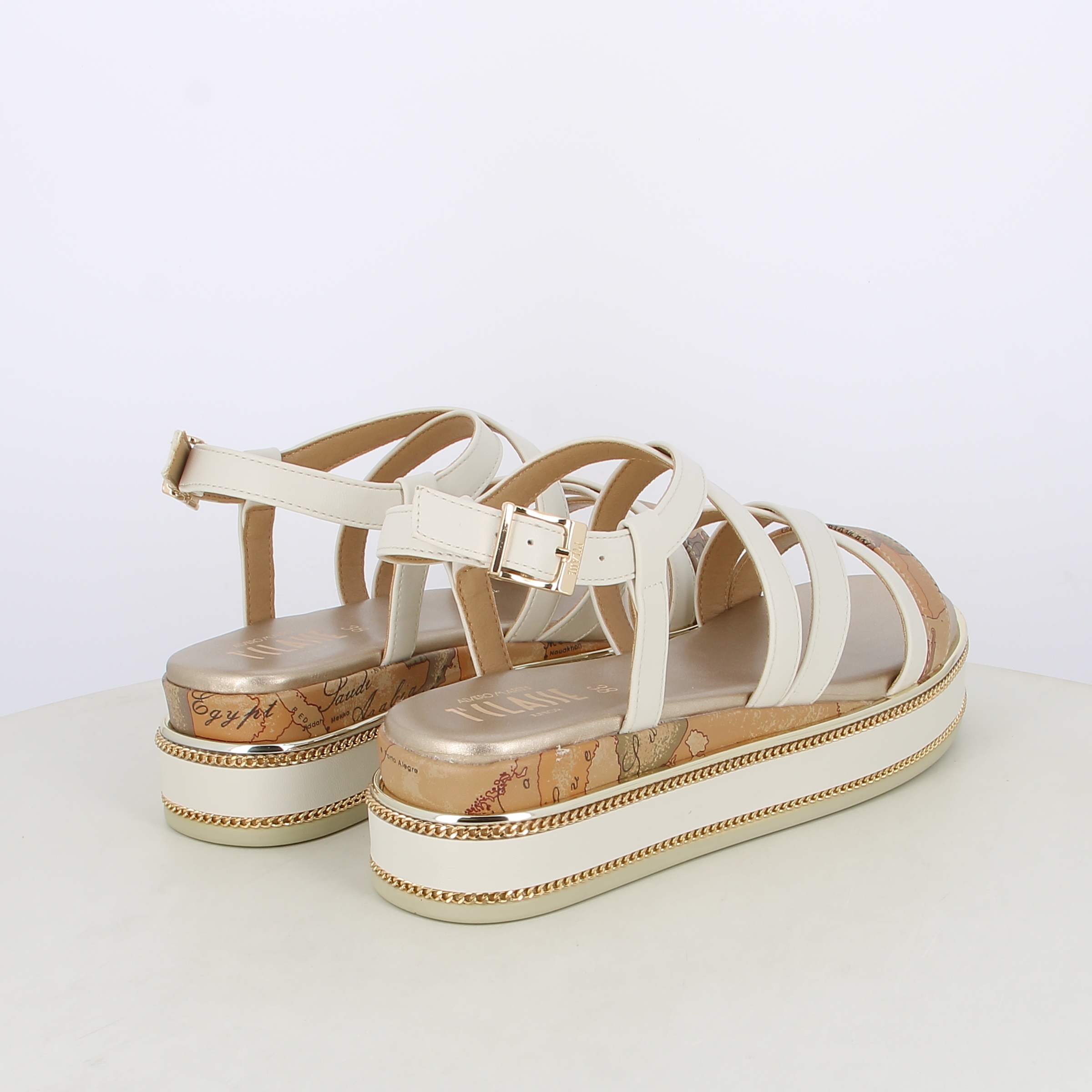 Sandali da donna bicolor con dettagli geo classic